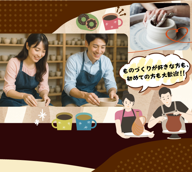 土のぬくもりを感じる手づくり体験と、お茶・お菓子でほっとひと息。お互いの人柄にふれ、優しくつながるひとときをご一緒に。